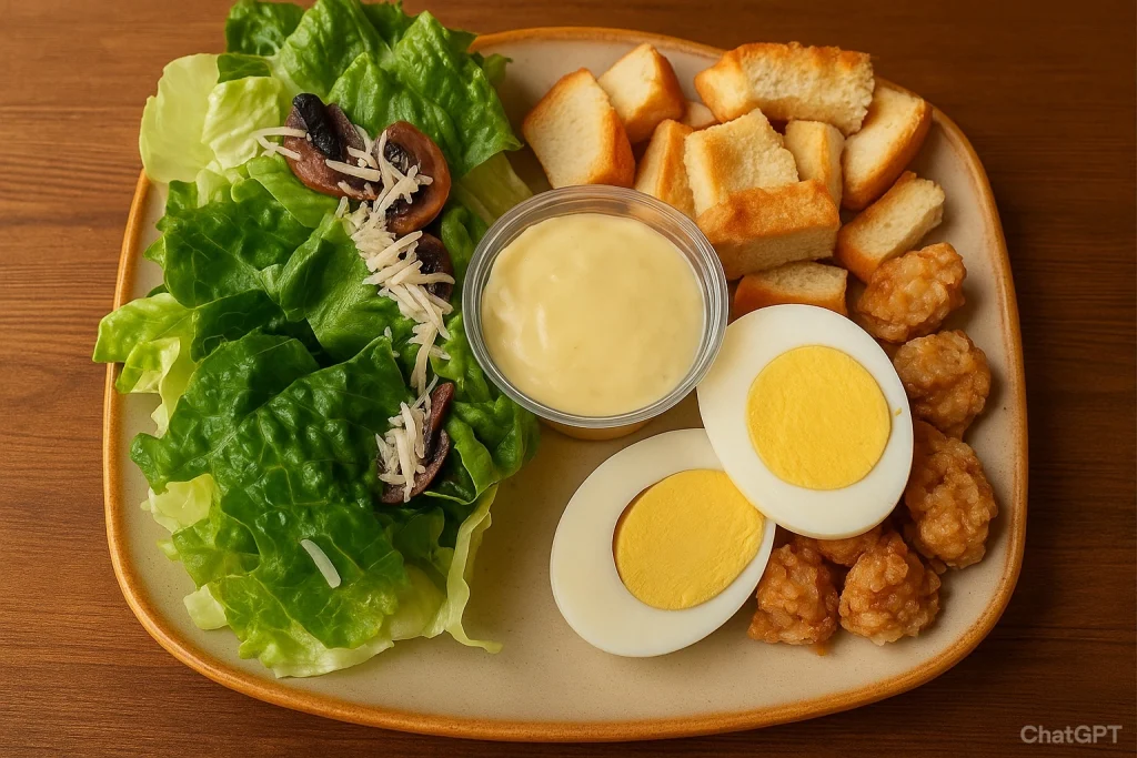 Homemade Caesar Salad, Telur Rebus, Oatmeal Tempe